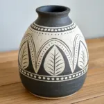 This project transforms a simple vessel into a striking piece of functional art using high-contrast black underglaze against a speckled cream canvas. The design combines rhythmic zig-zags with bold organic shapes for a modern, patterned aesthetic.