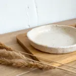 Handmade minimalist air-dry clay trinket dish, matte neutral tones, perfect for rings and keys.