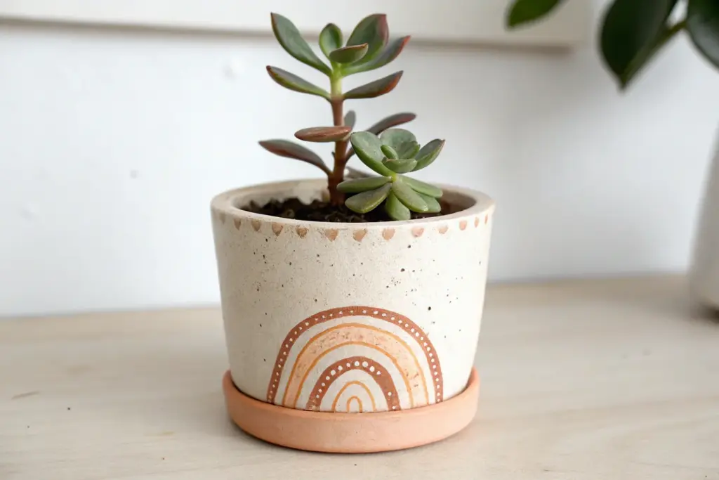 Since air dry clay isn’t waterproof, apply 2-3 coats of a waterproof matte varnish inside and out. This will protect your art from moisture when watering your plant.