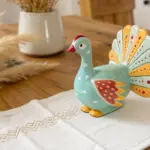 This charming, minimalist turkey figurine brings a warm, earthy touch to any Thanksgiving table setting. Sculpted from terracotta-colored air dry clay, it features lovely incised details on the tail feathers and wings that give it a handcrafted artistic feel.