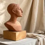 Roll a smaller ball of clay for the head. Score and slip the top of the cone body and the bottom of the head, then press them firmly together, blending the clay at the neck seam for a smooth transition. -
