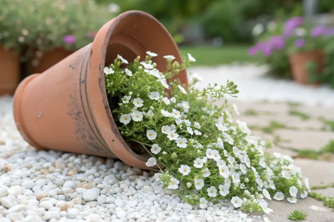 10+ Spilled Flower Broken Pots Garden Ideas for Charming Beds