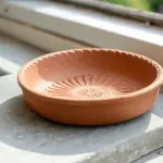 Wait for the pumpkin to dry slightly more (to the bone-dry stage). Then, gently brush away the little clay crumbs (burrs) created by carving using a stiff, dry brush. Do not use water here or you’ll blur the crisp lines.