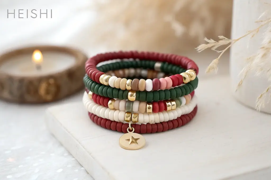 When I’m in the studio making holiday jewelry, Christmas clay bead bracelets are my go-to because they’re festive, fast, and seriously addictive to design. Here are a bunch of Christmas-ready ideas you can mix, match, and stack until they feel perfectly you.