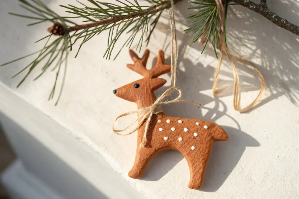 Threaded clay ornaments with simple cutouts and linen stitching for a calm, handmade Christmas