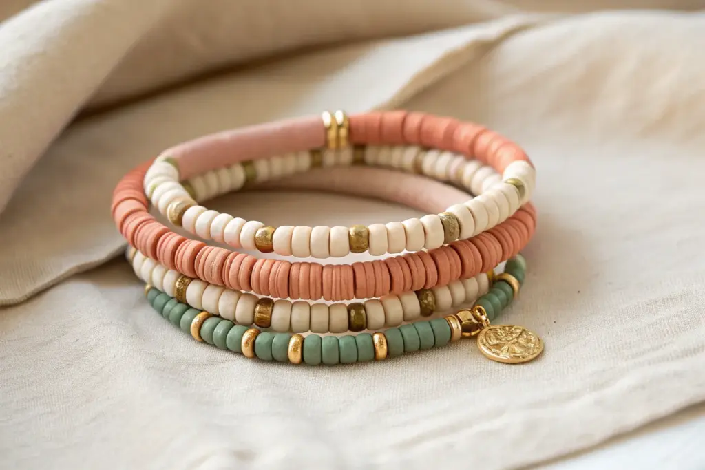 If you’ve got a pile of heishi beads and a little stretchy cord, you’re minutes away from a clay bead bracelet that looks totally custom. I pulled together my favorite design “recipes” so you can copy a look exactly or riff on it until it feels like you.