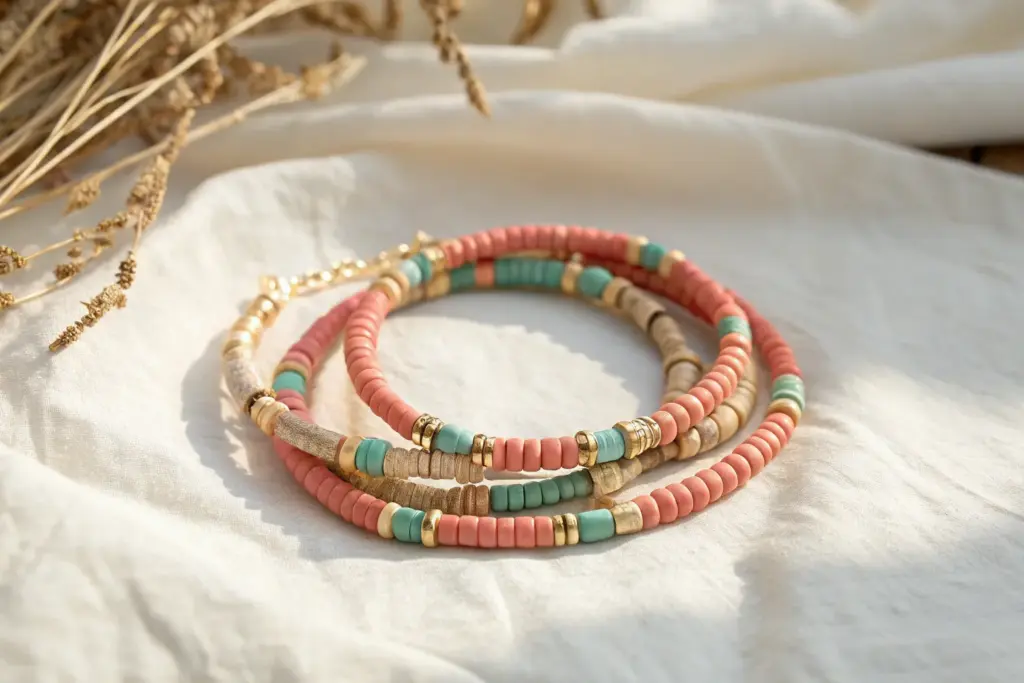 If you’re in the mood to string something cute in an afternoon, clay bead bracelets are my go-to—easy, colorful, and instantly satisfying. Below are my favorite clay bead bracelet ideas for mixing heishi beads, accents, and color “recipes” that look great solo or in a bracelet stack.