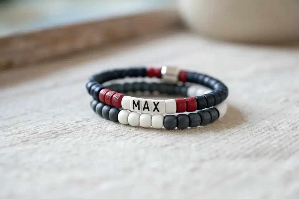 When I’m making clay bracelets for boys, I always aim for that sweet spot: tough-looking, comfy to wear, and still fun to customize. These ideas lean into masculine or gender-neutral vibes with bold color choices, clean patterns, and just enough personality to make each one feel like his own.