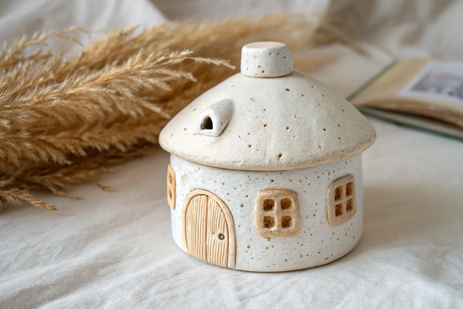 These minimalist clay houses bring a serene, Scandinavian touch to any bookshelf, serving as both charming decor and functional bookends. Their textured finish and simple geometric details celebrate the imperfect beauty of hand-built pottery.
