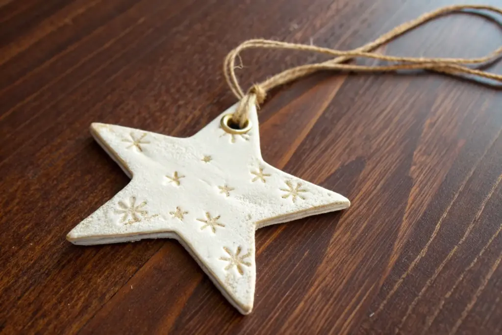 Before cutting the star shape, gently press a lace doily or a textured fabric into the rolled clay to emboss a subtle pattern onto the surface.