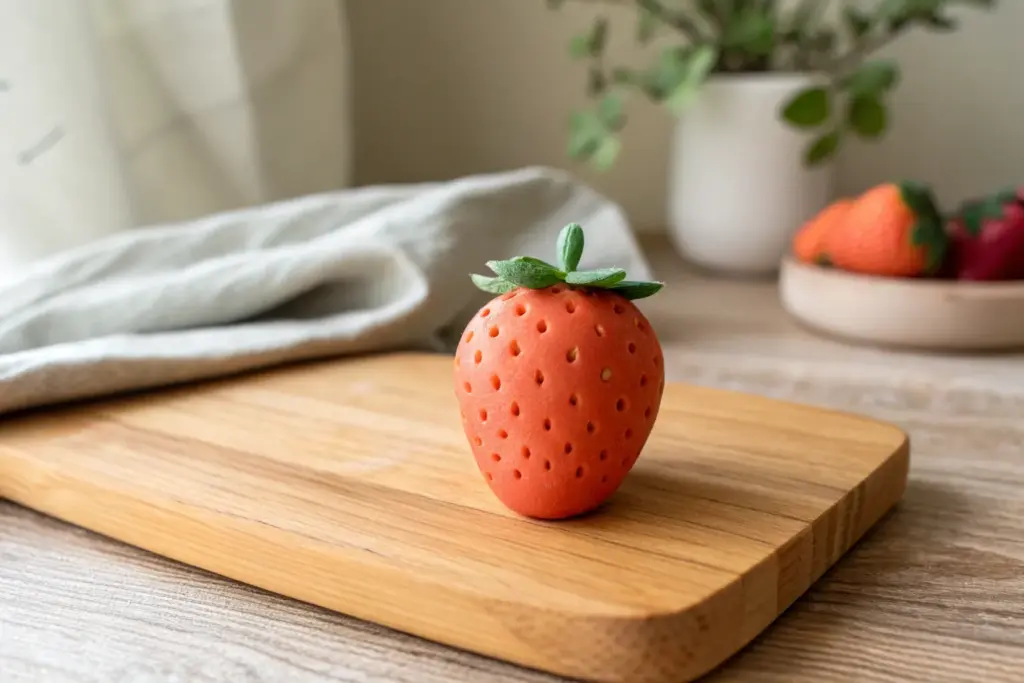 Before baking, gently press a piece of coarse fabric or sandpaper against the mushroom caps to give them an organic, non-plastic texture.