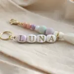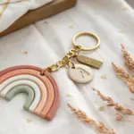 Embrace simplicity with this minimalist keychain featuring a trendy speckled finish and clean typography. The creamy white clay paired with gold lettering creates an elegant, earthy accessory perfect for gifting or keeping.