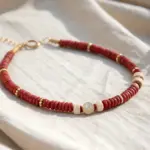 Connect the final jump rings on the far left and right discs directly to the leather cord, securing the spacer beads just above the connection points to hide the knots or crimps.