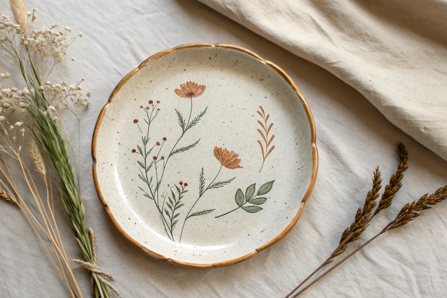 Capture the delicate beauty of a garden stroll with this lovely botanical keepsake plate. By pressing real fern fronds and small blooms directly into clay, you create a subtle, fossil-like relief that is highlighted with careful hand-painting.