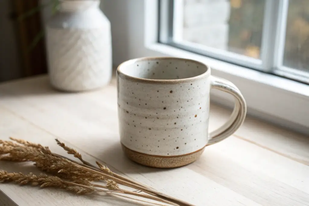 - Speckled clay body (stoneware or earthenware)