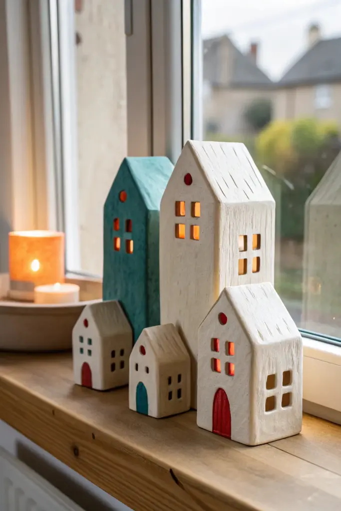 Create a charming little village of slab-built houses that glow warmly from within. With rustic textures and simple geometric cutout windows, this set brings a scandi-inspired hygge vibe to any windowsill.