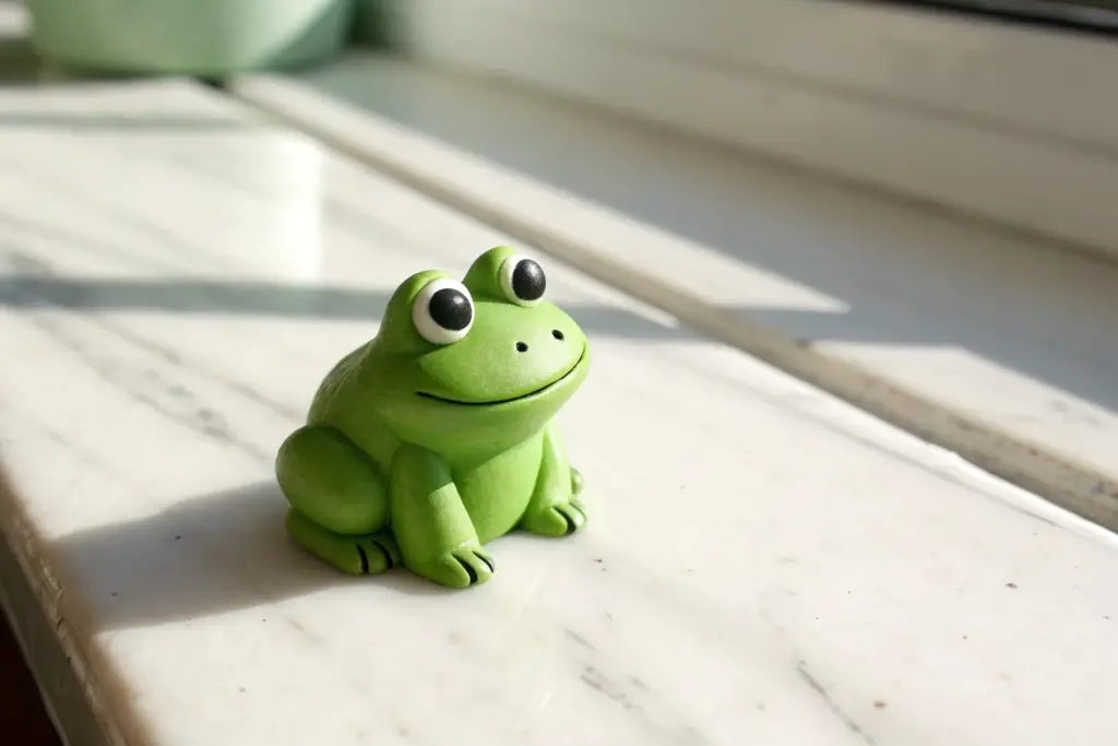 Add a tiny dot of UV resin or high-gloss varnish to the frog’s eyes after baking. It gives them a wet, lifelike glint that makes the character pop.