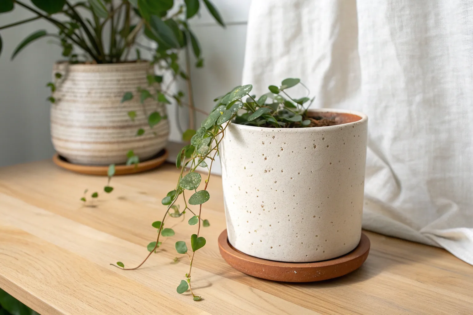 Use a speckled buff clay body instead of plain white. The natural iron spots that appear after firing add instant texture and an organic, professional pottery studio look.
