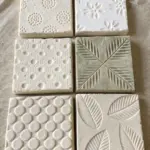 Before cutting your shapes, press a piece of sandpaper, fabric, or a texture sheet into the raw clay slab to give the surface an organic, stone-like finish.