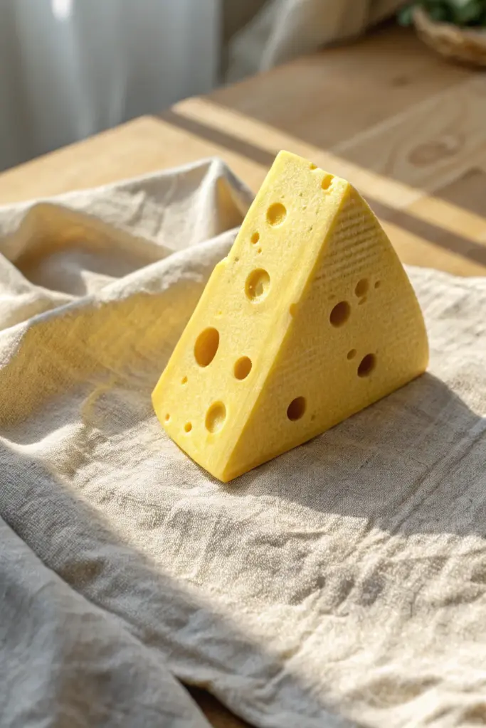 Create a separate, thin slice of cheese lying next to the wedge. Roll a scrap of your mix very thin, poke holes, and drape it naturally for a softer look.
