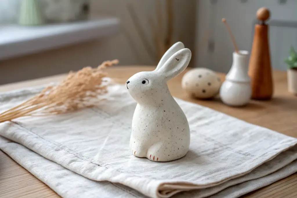 Sweet pinch pot bunny in matte white clay, a minimalist sculpture idea you can make in one sitting.