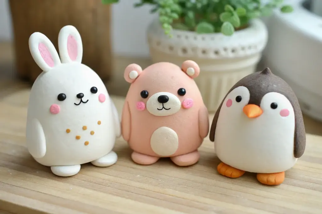 Create this adorable lineup of miniature animal friends to brighten up your desk or shelf. These smooth, rounded figurines feature simple shapes and sweet expressions, making them perfect for beginners to practice basic clay modeling techniques.
