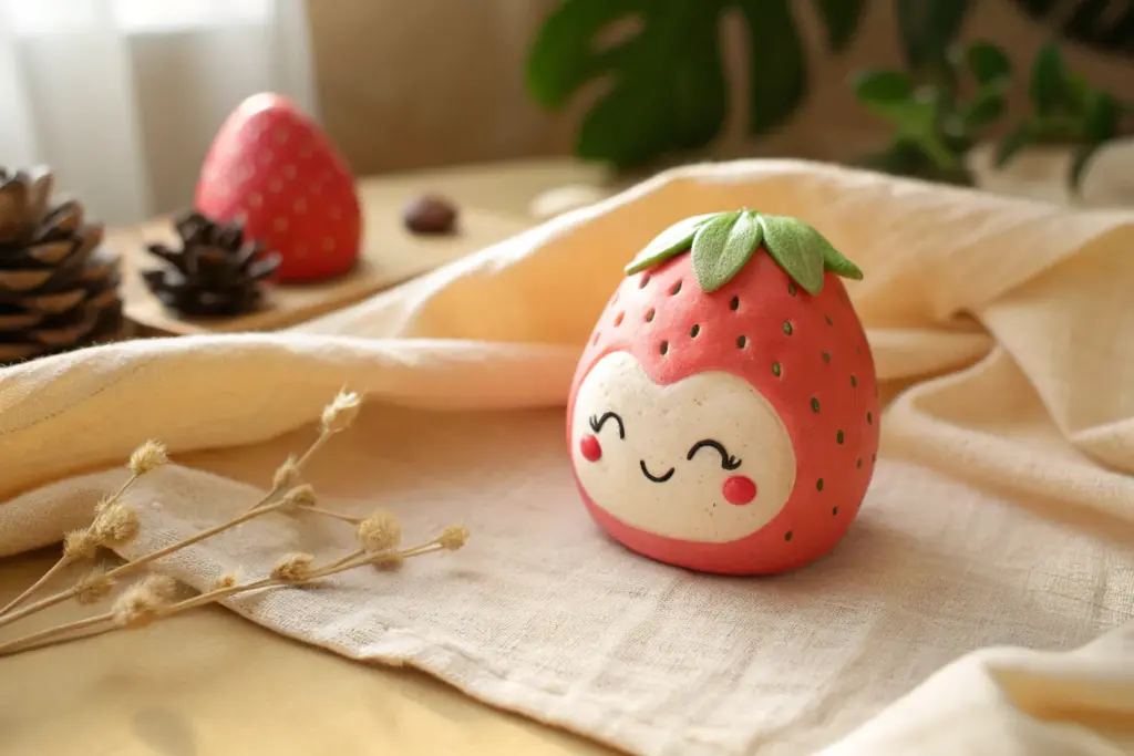 Mix a tiny pinch of fine glitter into the red watermelon clay or the strawberry glaze for a sugary, candy-coated effect.