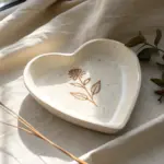 This rustic, handmade trinket dish features charmingly sunken lettering and a lovely speckled finish that mimics high-fire ceramics. It’s the perfect stylish catch-all for keys or jewelry, blending a modern aesthetic with the tactile warmth of paper clay.