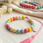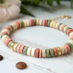 - Polymer clay in sage green, dusty rose/terracotta, and blush pink/beige