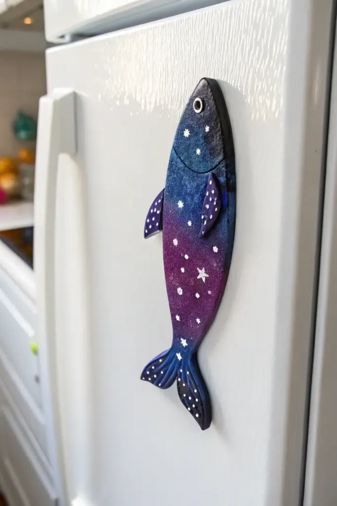 Bring the mysteries of deep space to your kitchen with this galaxy-themed fish magnet. The project combines simple sculpting with a fun, layered painting technique to achieve that stunning nebula effect.