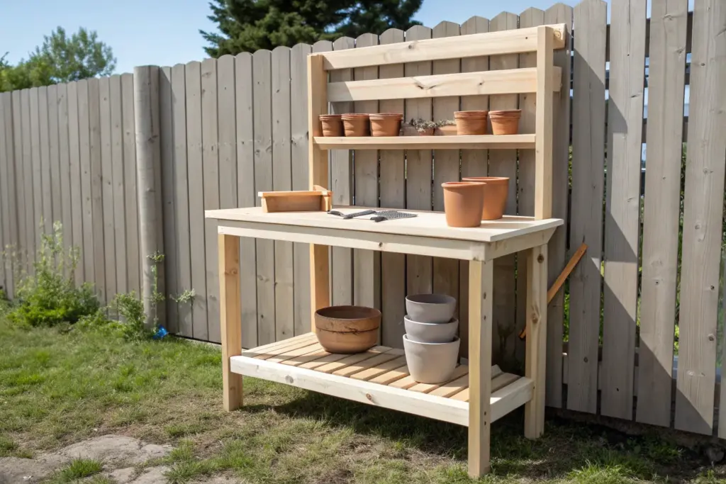 Covered Outdoor Potter’s Bench for Messy Days