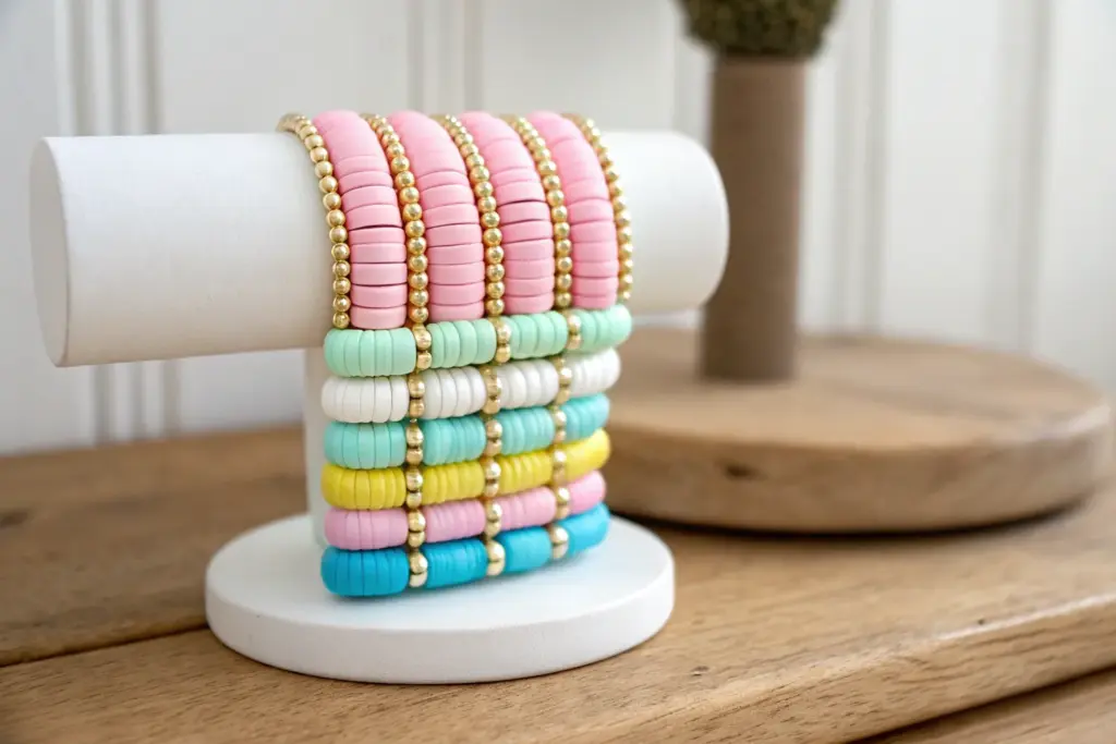 If you love that crisp, colorful, pulled-together vibe, preppy clay bead bracelets are basically the most fun little accessory you can make in an afternoon. I’m sharing my favorite heishi bead patterns and stack ideas that look fresh, summery, and totally you.