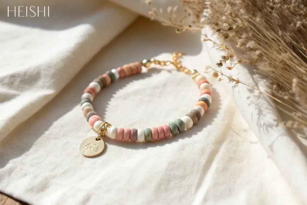 When I need a quick win at the studio table, I grab heishi clay beads and stretchy cord—because a cute clay bead bracelet can happen in minutes. These simple clay bead bracelet ideas are easy to copy exactly, or you can swap colors to make them totally yours.