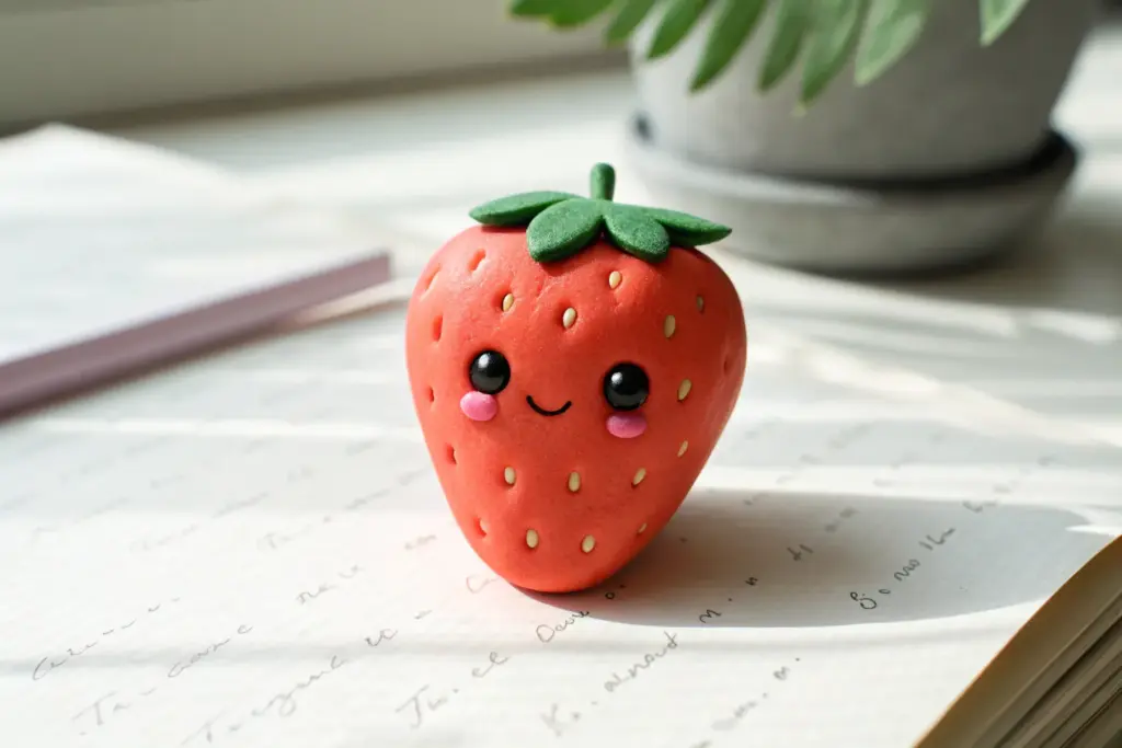These adorable polymer clay charms transform everyday snacks into tiny companions with personality. Featuring a classic pink donut, a fruity strawberry-topped treat, and a happy avocado, this trio is perfect for practicing simple shapes and delicate facial details.
