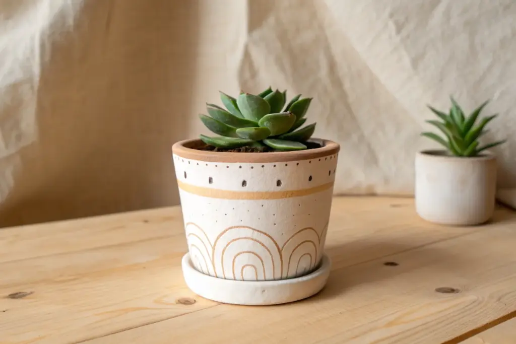 If you’ve got a plain terra cotta pot and a cute little plant, you’re already 90% of the way to a seriously charming succulent pot. Here are my go-to succulent pot painting ideas—from classic, clean designs to a few playful ones that feel like instant personality on your shelf.