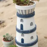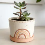 Transform a plain clay pot into a modern home for your succulents with this crisp, geometric design. By using the natural terracotta color as one of your stripes, you create a warm, earthy look that pairs perfectly with bright white lines.