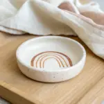 Before drying, press a piece of linen fabric or a dried leaf into the base of the dish to create a subtle, fossil-like impression.