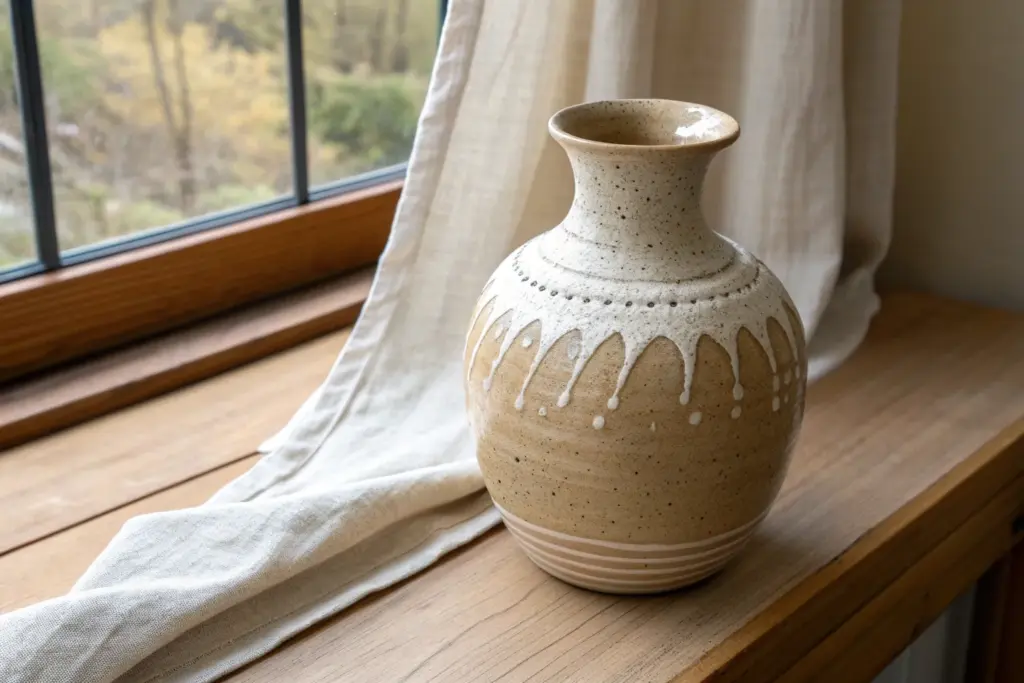 Place your finished vase near a window where the light can catch the subtle texture of the clay and the shadow of your decorative tie