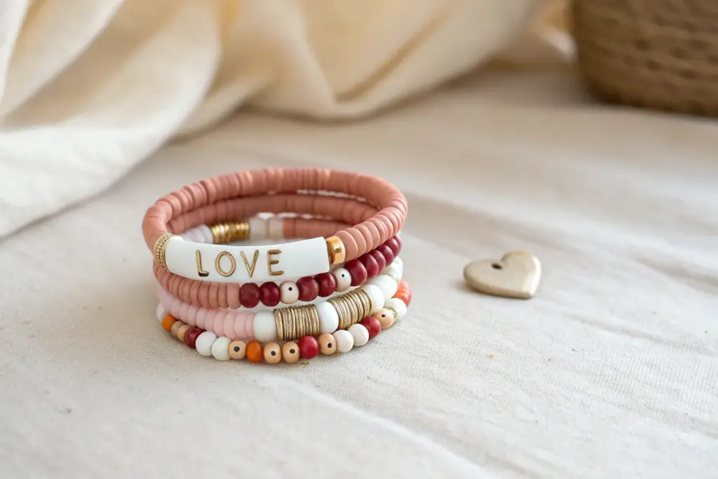 Valentine’s bracelets are my favorite kind of clay jewelry because they’re sweet, quick to make, and you can personalize them a hundred different ways. If you love heishi clay beads, candy-heart colors, and a little bit of charm detail, these ideas will have your wrists stacked in no time.