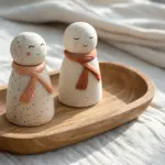 Roll two balls of white clay, roughly the size of a tangerine. Shape each into a smooth teardrop form, keeping the bottom wide for stability and tilting the top slightly to create the head. -