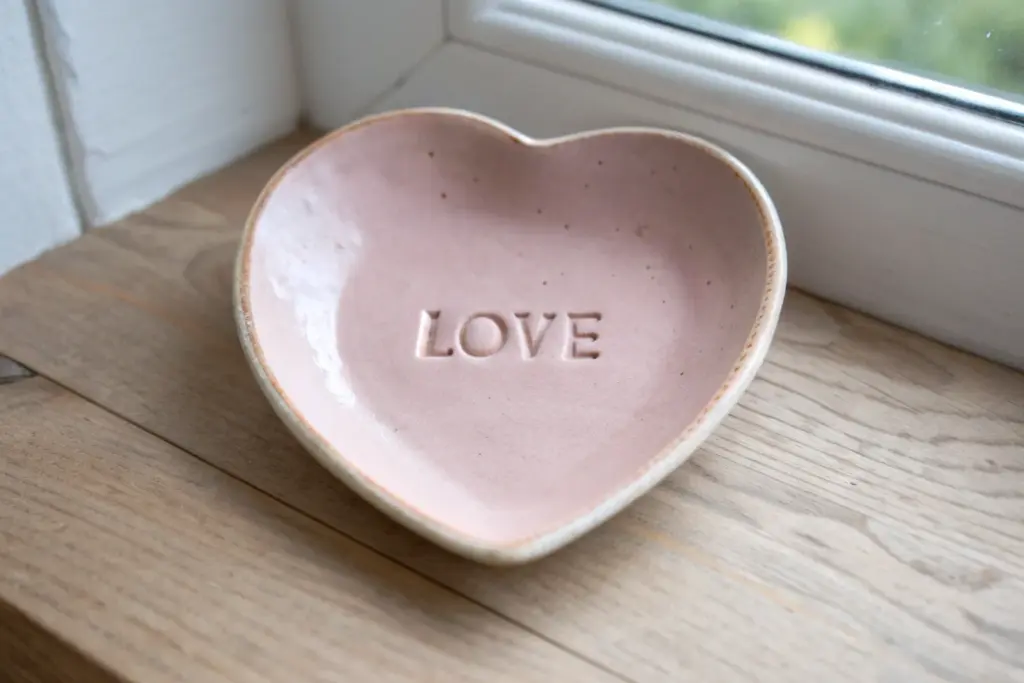 Before drying, stamp initials or a special date into the tiny heart or the underside of the base to turn this piece into a custom anniversary gift.